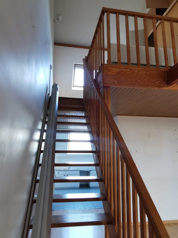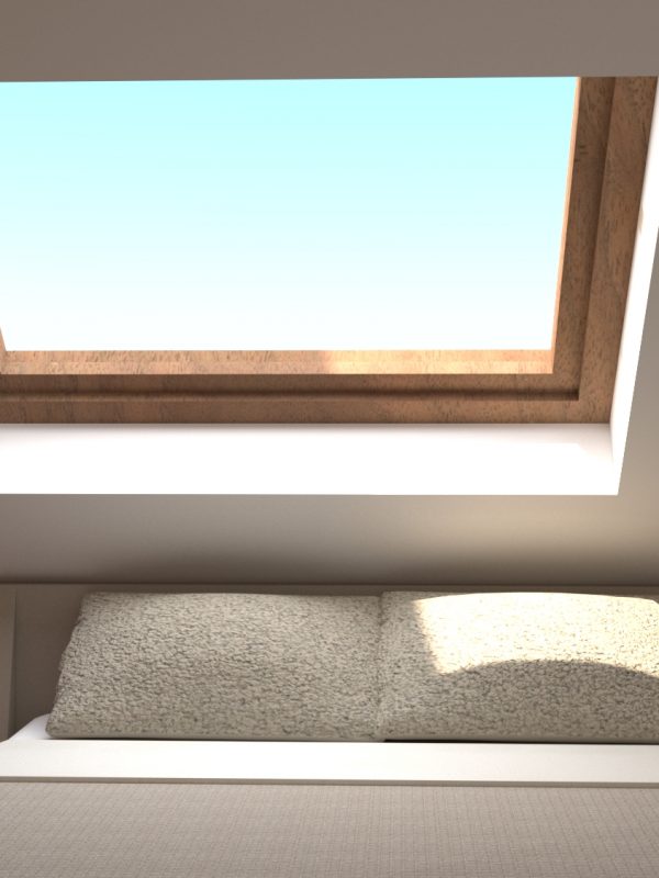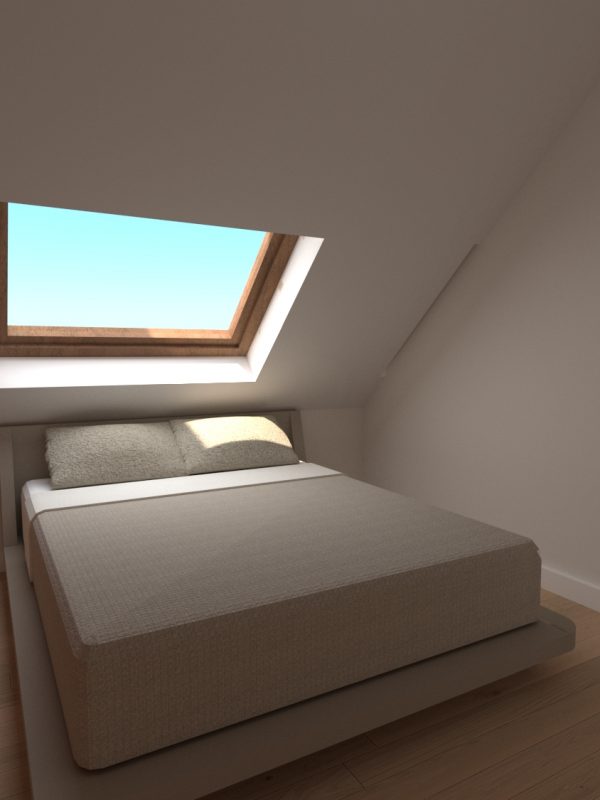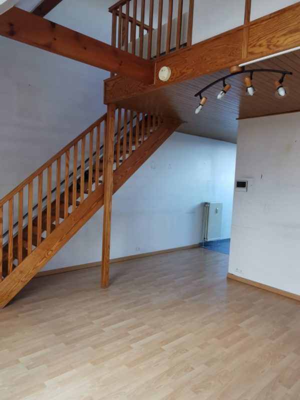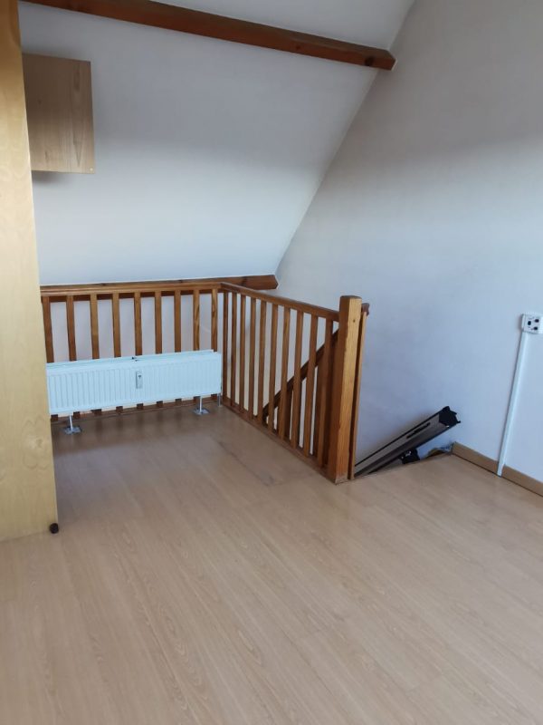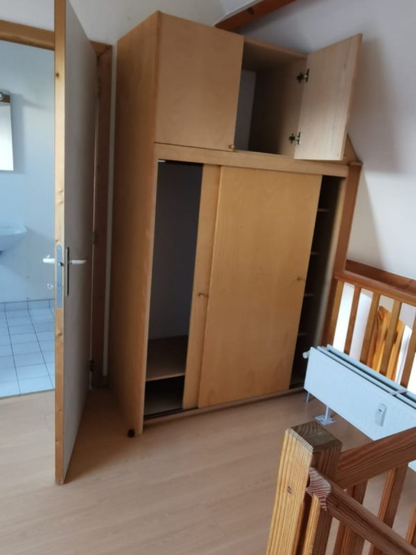 La chambre en mezzanine, avec sa salle de bain attenante, est un véritable cocon douillet, où les occupants pourront se ressourcer dans un cadre intimiste et apaisant.