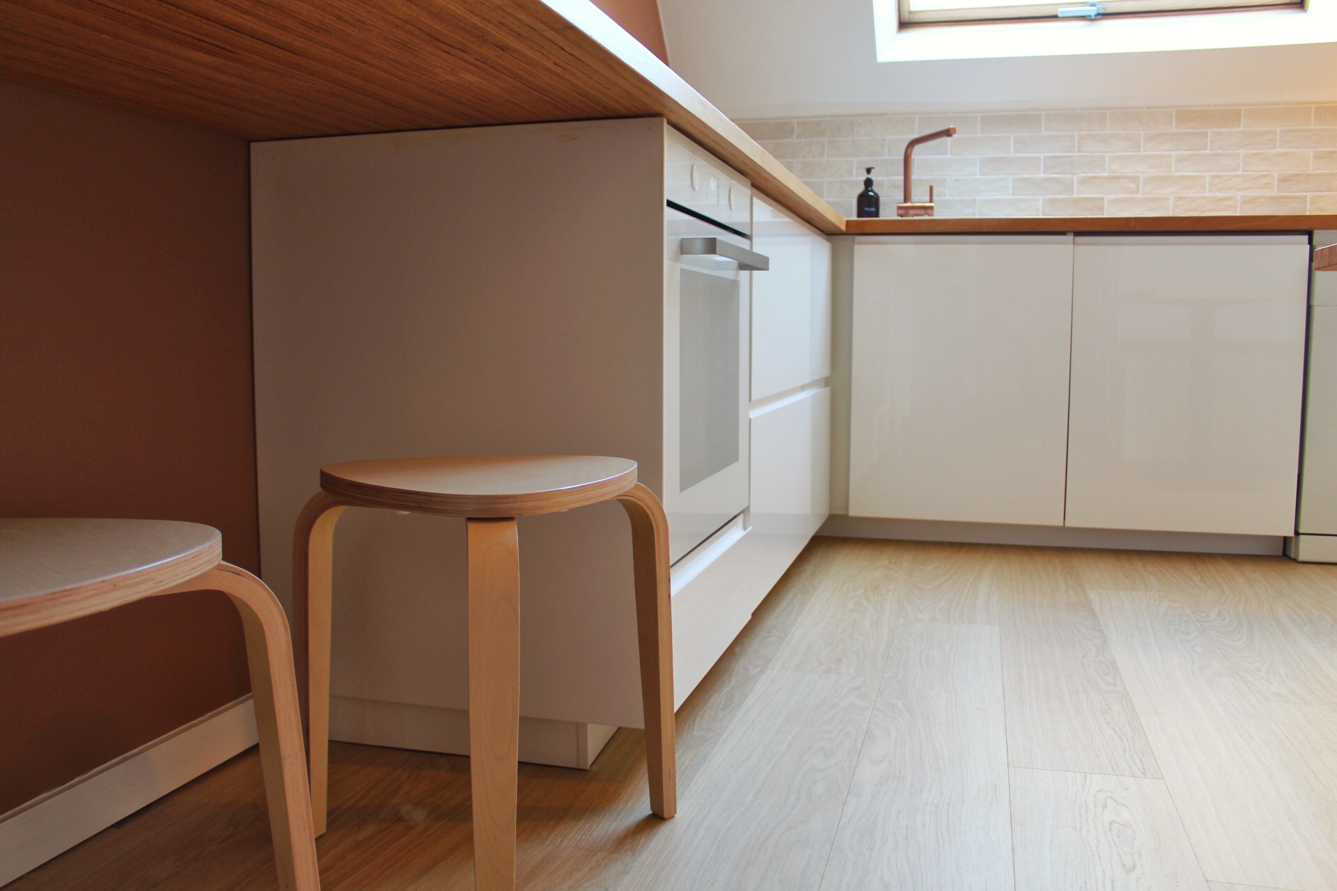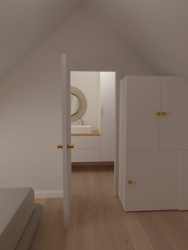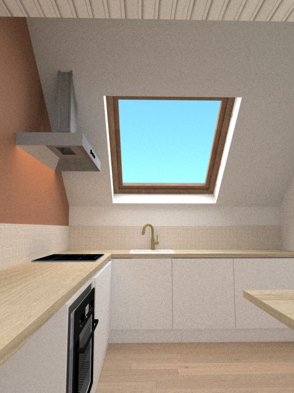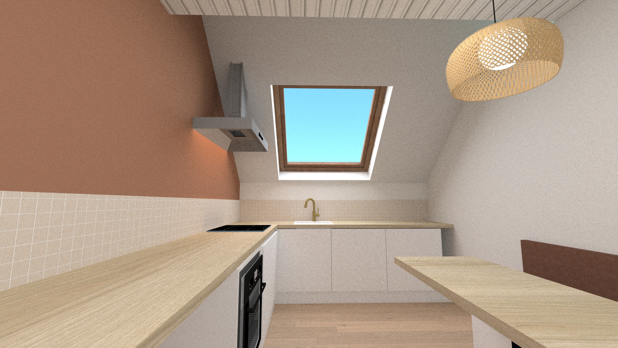 En ce qui concerne la cuisine, nous avons conçu des meubles sur-mesure dans nos bureaux, offrant ainsi une solution parfaitement adaptée à l'espace et aux besoins pratiques des futurs occupants. Pour compléter l'aménagement, nous avons sélectionné des meubles de récupération ou de seconde main, apportant ainsi une touche d'authenticité et de durabilité à l'intérieur.