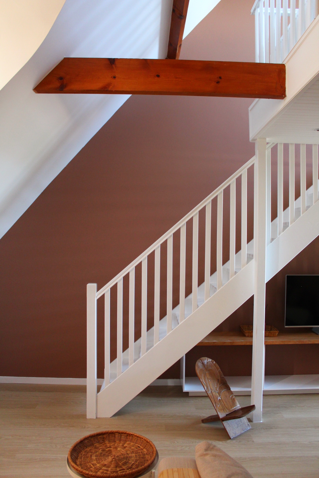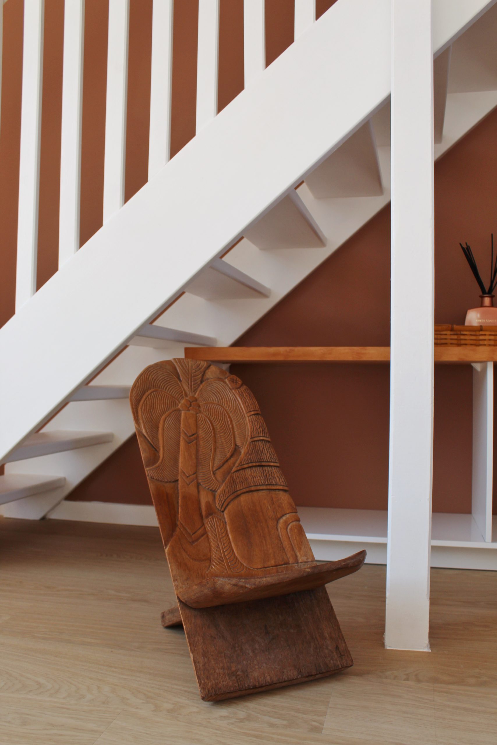 Le bois, matériau chaleureux par excellence, est omniprésent dans notre projet. Nous avons rénové toutes les boiseries, y compris l'escalier et la mezzanine, afin de préserver l'identité et le charme de l'appartement.