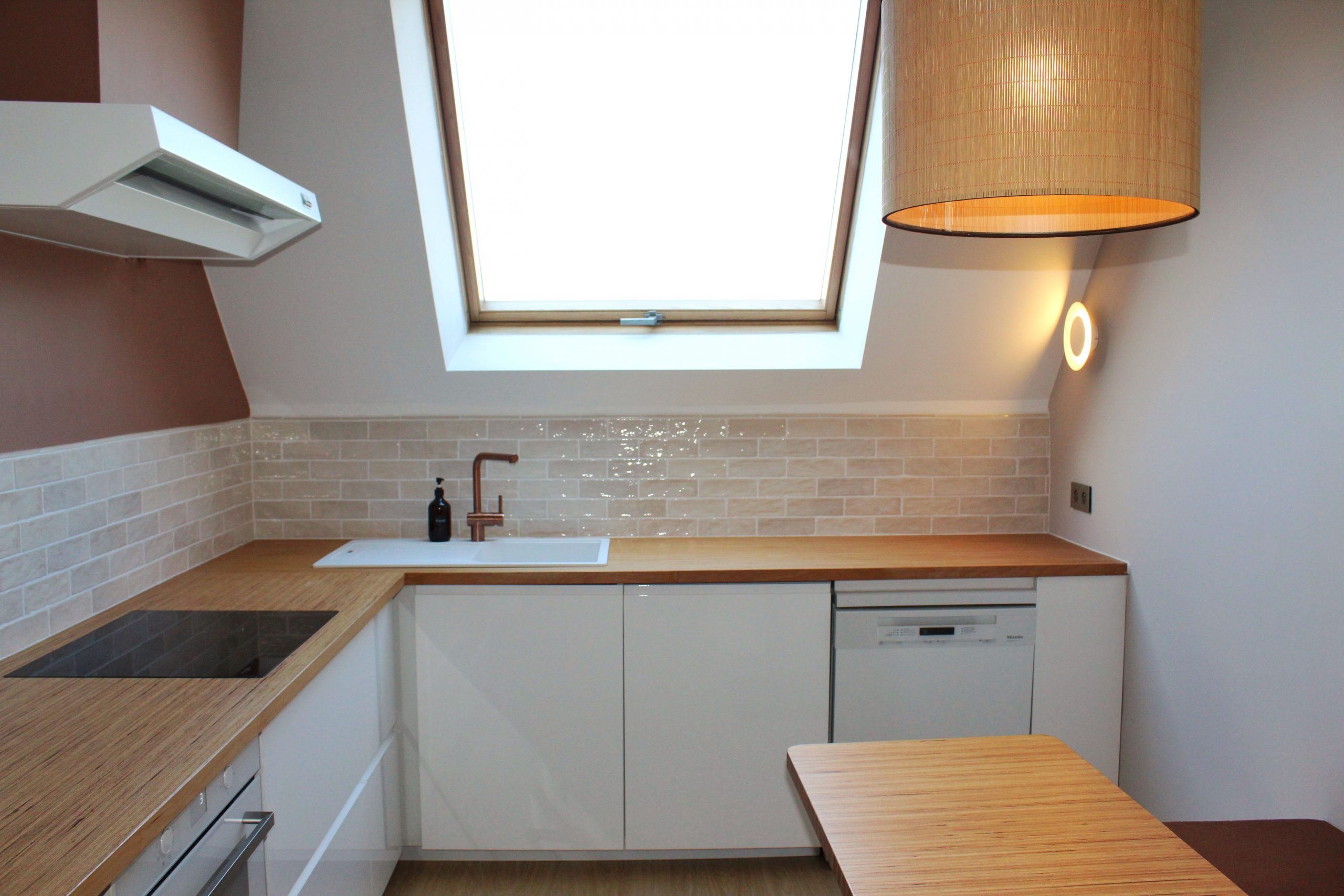 Au sein de ce charmant appartement de 65m², nous avons su préserver de nombreux éléments d'origine, leur insufflant néanmoins une nouvelle vie grâce à notre expertise en rénovation. Les sols ainsi que la cuisine, dans un état irrécupérable, ont été remplacés par des matériaux de qualité, harmonieusement intégrés à l'espace.